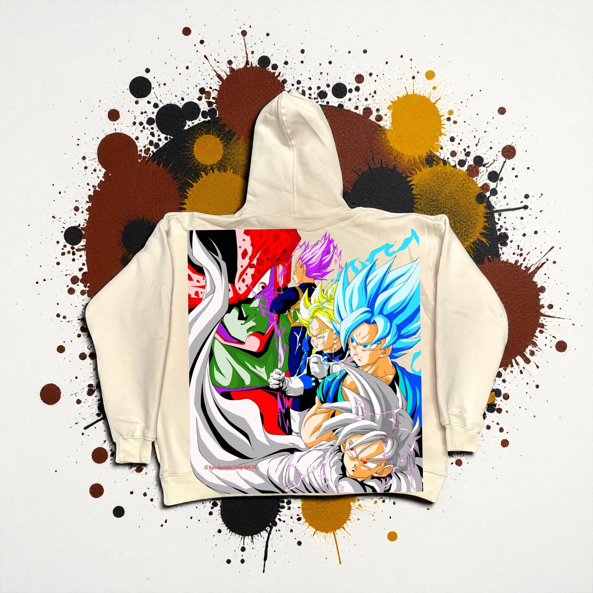 Cream Hoodie - Gohan Breaking point Front & Cell Games Variant back